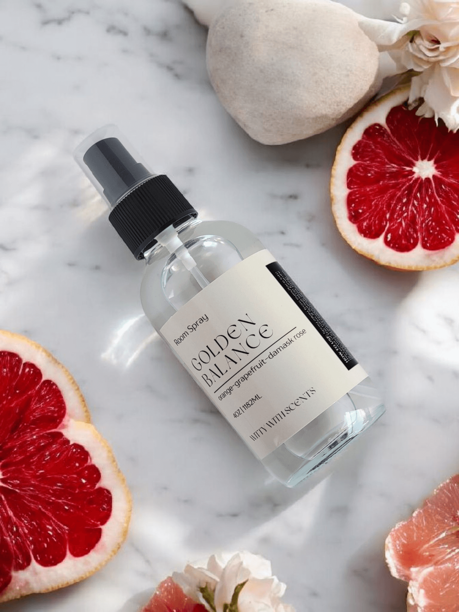 Experience the refreshing and invigorating scent of the Golden Balance Room/Linen Spray. Its unique blend of citrus and fresh floral notes will uplift any space, creating a balanced and harmonious atmosphere. Made with natural ingredients, this spray provides a natural and long-lasting aroma. Perfect for use in any space, whether at home, in the car or in a business setting.